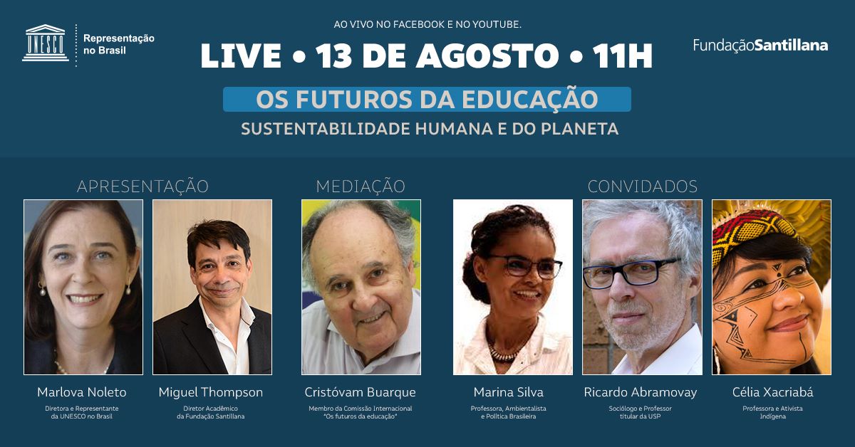 A UNESCO e a Fundação Santillana convidam para o webinário “Sustentabilidade humana e do planeta”, no dia 13 de agosto, das 11h às 12h30 (horário...