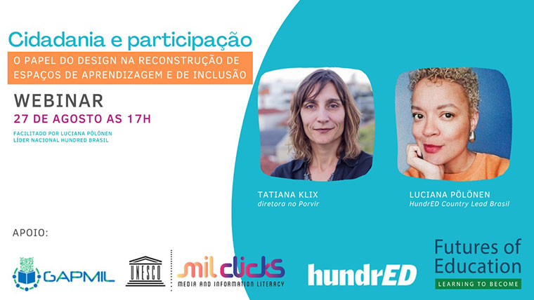 Na quinta-feira (27), às 17 horas, Tatiana Klix, diretora do Porvir, participa do webinário “Cidadania e participação - o papel do design na reconstrução de...